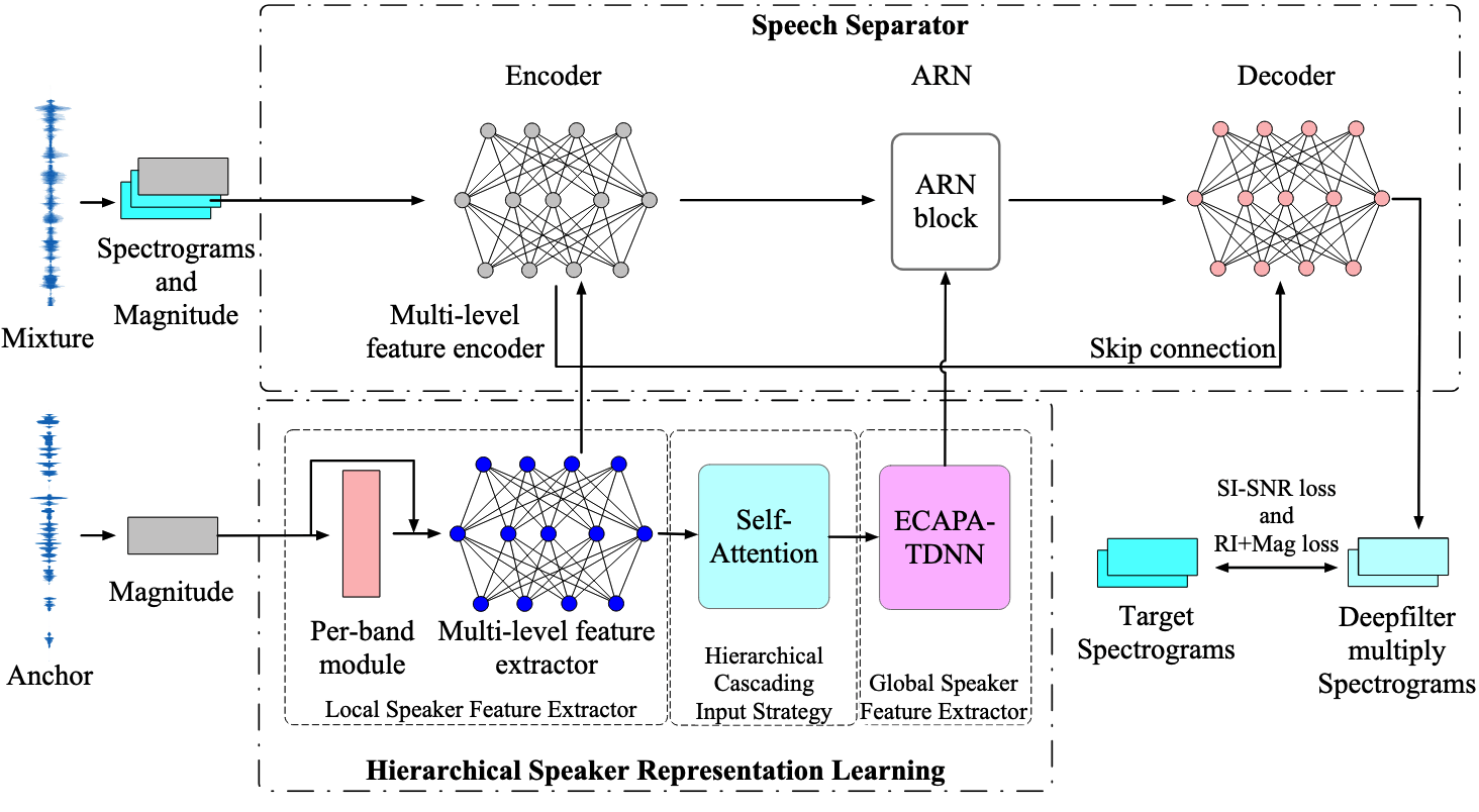 近日,张学良教授课题组(IMUSPEECHLab)何树林同学在目标说话人提取(Target Speaker Extraction,TSE)方面的研究取得新进展,相关论文“Enhancing Target Speaker Extraction with Hierarchical Speaker Representation Learning”发表在Neural Networks学术期刊。该刊是计算机科学、神经网络领域国际旗舰期刊,最新影响因子为6.0。