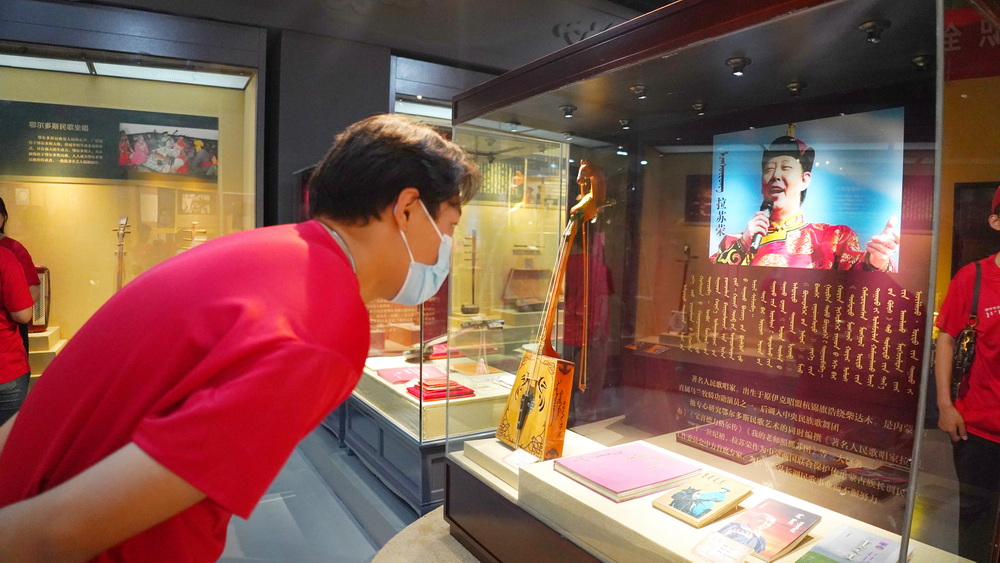 鄂尔多斯是歌海舞乡,乌审旗的“鄂尔多斯长调民歌”为自治区级非物质文化遗产、“鄂尔多斯短调民歌”为旗级非物质文化遗产。实践团在乌审旗鄂尔多斯民歌博物馆里参观了鄂尔多斯民歌发展历程、民歌歌唱家、歌曲及乐器,深入了解鄂尔多斯民歌的魅力与价值。