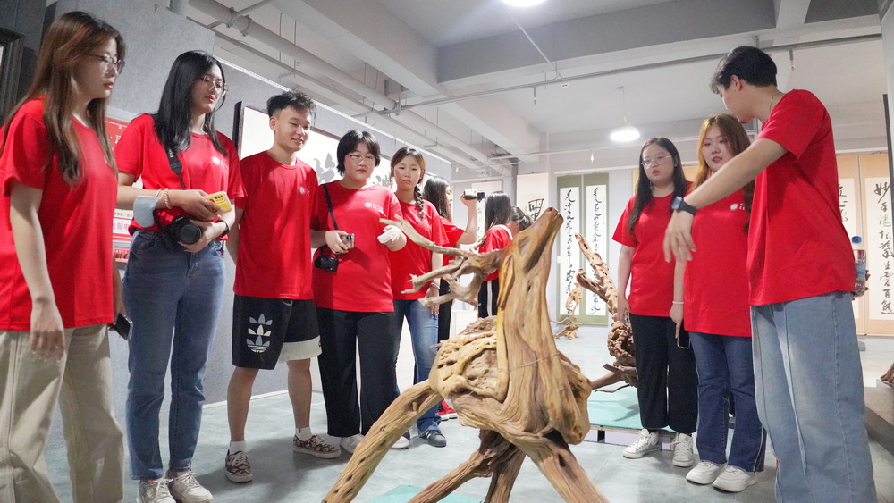 黑圪兰是防风治沙的天然屏障,其根艺列入鄂尔多斯市非遗名录。在黑圪兰生态文化艺术展厅,实践团欣赏以根艺、书法、绘画、诗词、摄影五种艺术形式展现的黑圪兰文化内涵和艺术魅力,黑圪兰的勃勃生机和不休的气节使人们更加深刻意识到稀奇植物的保护对生态文明建设的重要意义。