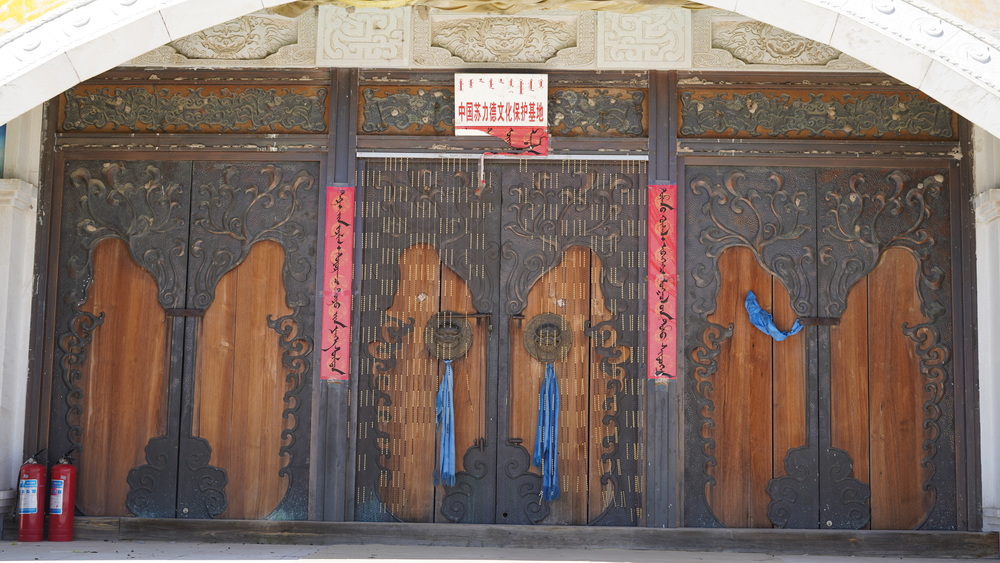 乌审旗是中国苏力德文化之乡,察干苏力德祭祀入选国家级非物质文化遗产名录。实践团参观了位于乌审旗走马旅游度假区的中国苏力德文化保护基地,听取乌审旗察干苏力德非物质文化遗产传习协会秘书长斯庆吉日嘎拉的讲解,深入了解察干苏力德作为“和平符号”的文化内涵。