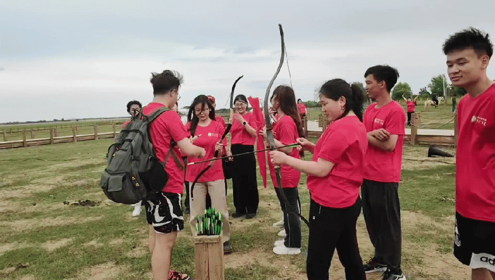 在巴音淖尔草原靶场,实践团师生兴致勃勃地传习蒙古族“男儿三技”之一的射箭,通过反复练习,在智慧、力量和技巧的协调中基本掌握了射箭这门富有挑战性的传统技艺。