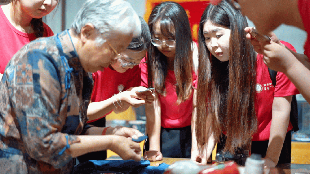 非物质文化遗产的传习体验是实践活动的重要内容。实践团师生与非物质文化遗产传承人互动交流,动手体验了非物质文化遗产制作工艺。